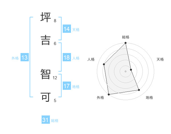 坪吉 智可さんを姓名の画数から五運を鑑定