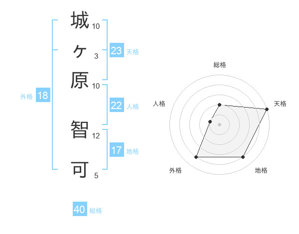 城ヶ原 智可さんの天格は23画の5点!