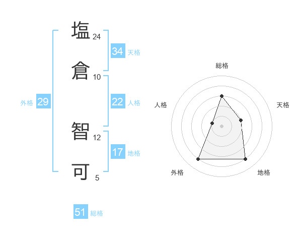 塩倉 智可さんの総格は51画の3点!