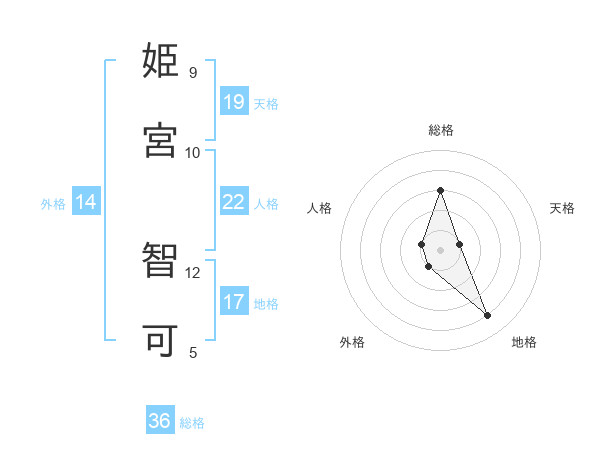 姫宮 智可さんの天格は19画の1点!