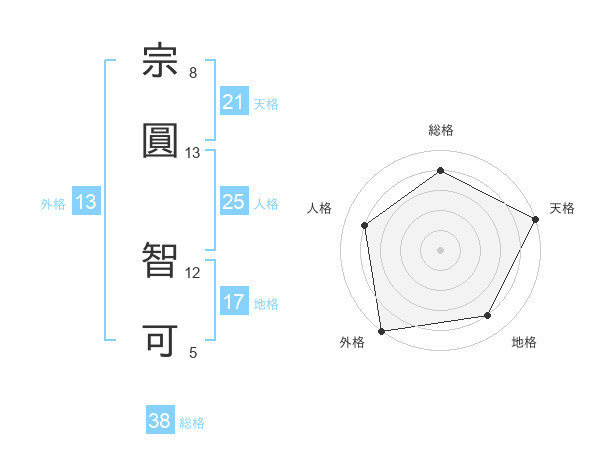 宗圓 智可さんを姓名の画数から五運を鑑定