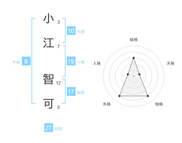 小江 智可さんの総格は27画の3点!