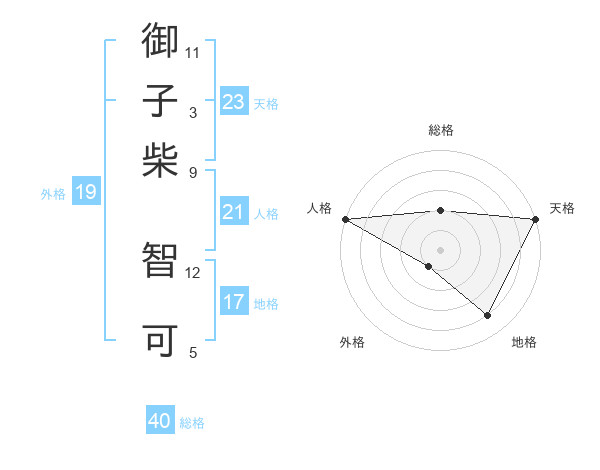 御子柴 智可さんの天格は23画の5点!
