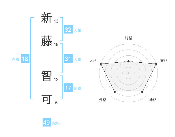 新藤 智可さんの天格は32画の5点!