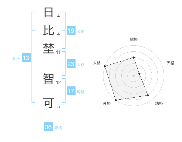 日比埜 智可さんを姓名の画数から五運を鑑定