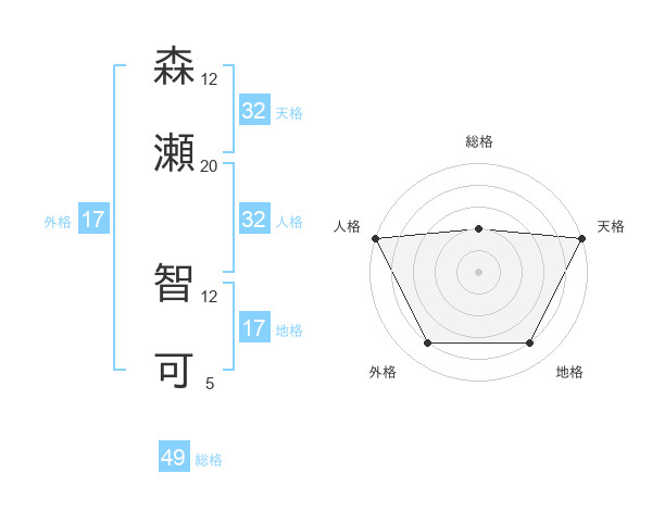 森瀬 智可さんの天格は32画の5点!