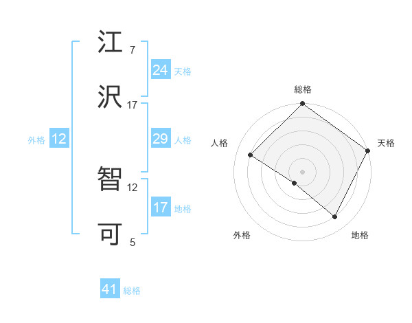 江沢 智可さんの天格は24画の5点!