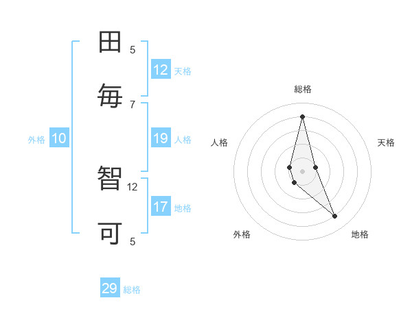 田毎 智可さんを姓名の画数から五運を鑑定