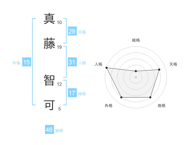真藤 智可さんの総格は46画の1点!