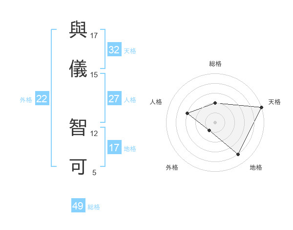 與儀 智可さんの天格は32画の5点!