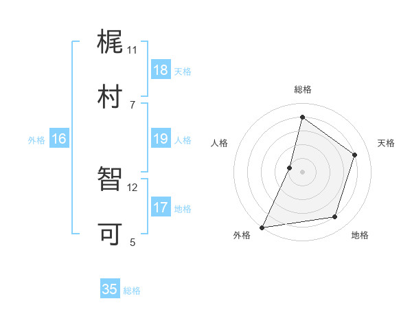 梶村 智可さんを姓名の画数から五運を鑑定