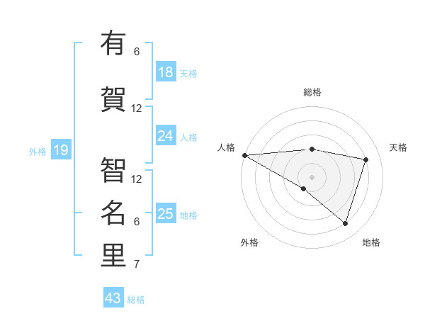 有賀 智名里さんを姓名の画数から五運を鑑定