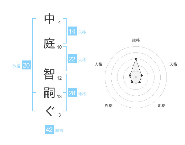 中庭 智嗣ぐさんの総格は42画の3点!