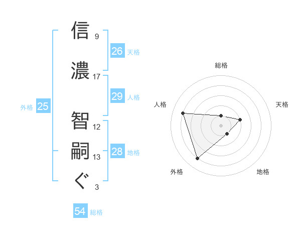 信濃 智嗣ぐさんの総格は54画の1点!
