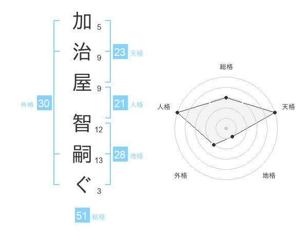 加治屋 智嗣ぐさんを姓名の画数から五運を鑑定
