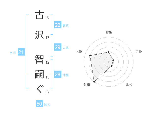 古沢 智嗣ぐさんを姓名の画数から五運を鑑定