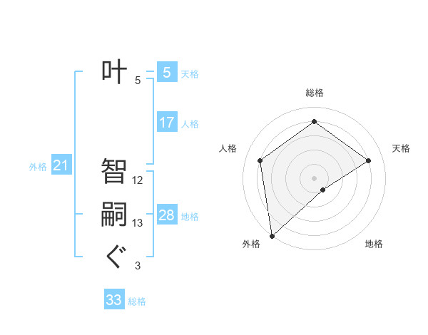 叶 智嗣ぐさんを姓名の画数から五運を鑑定