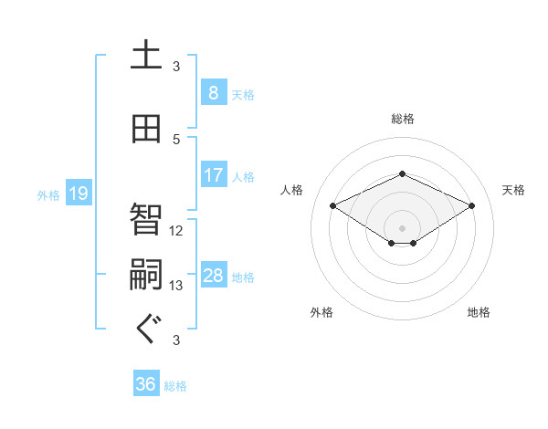 土田 智嗣ぐさんを姓名の画数から五運を鑑定