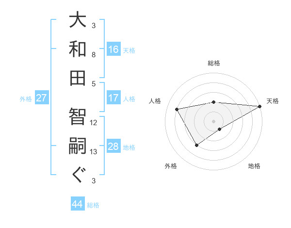 大和田 智嗣ぐさんを姓名の画数から五運を鑑定