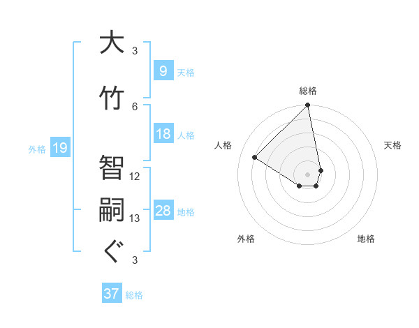 大竹 智嗣ぐさんの総格は37画の5点!