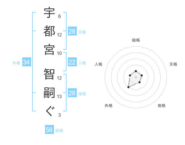 宇都宮 智嗣ぐさんの総格は56画の1点!
