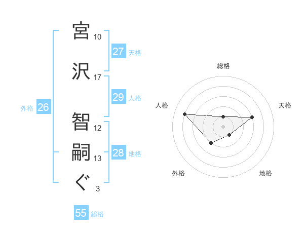宮沢 智嗣ぐさんの総格は55画の1点!
