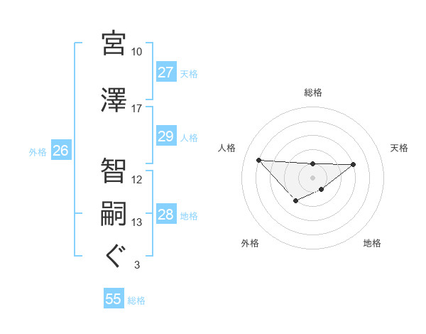 宮澤 智嗣ぐさんの総格は55画の1点!