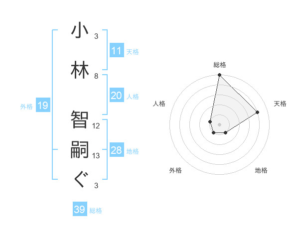 小林 智嗣ぐさんの総格は39画の5点!