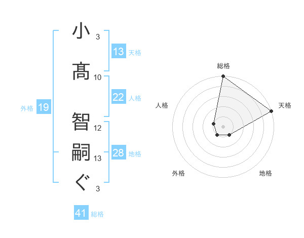 小髙 智嗣ぐさんの天格は13画の5点!