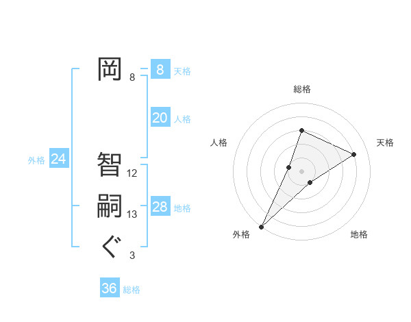 岡 智嗣ぐさんの外格は24画の5点!