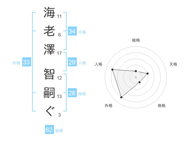 海老澤 智嗣ぐさんの外格は33画の4点!