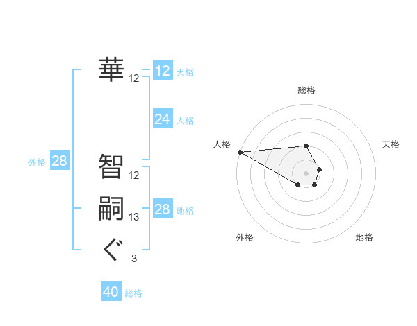 華 智嗣ぐさんを姓名の画数から五運を鑑定