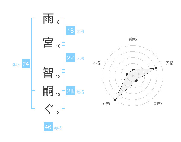 雨宮 智嗣ぐさんの天格は18画の4点!
