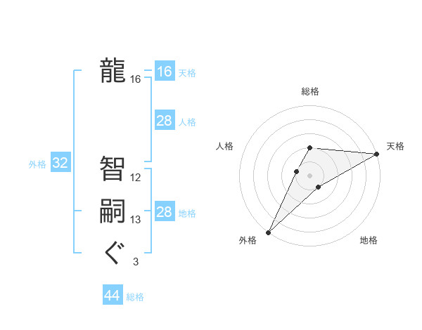 龍 智嗣ぐさんの天格は16画の5点!