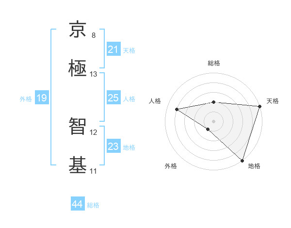 京極 智基さんの総格は44画の2点!