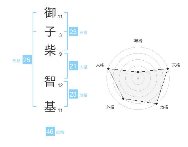 御子柴 智基さんを姓名の画数から五運を鑑定