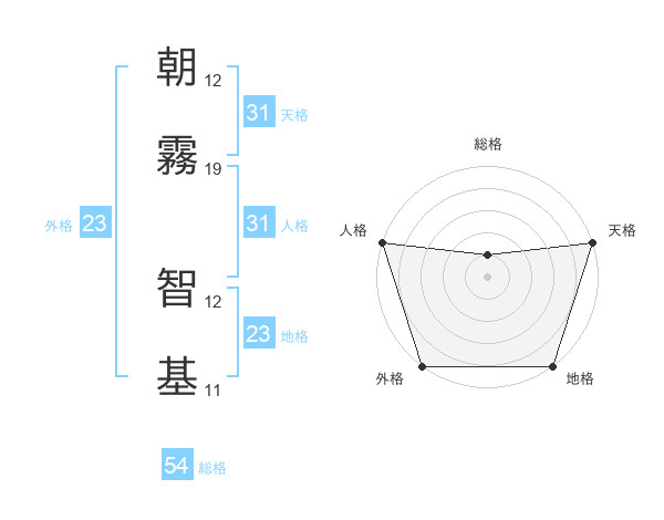 朝霧 智基さんの天格は31画の5点!