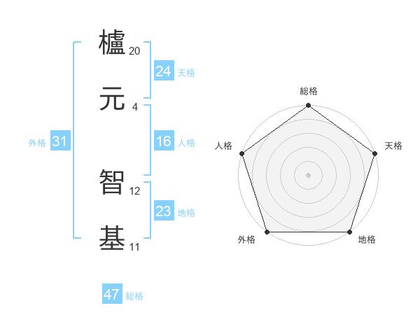 櫨元 智基さんの天格は24画の5点!