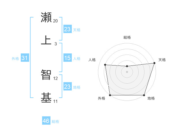 瀬上 智基さんを姓名の画数から五運を鑑定