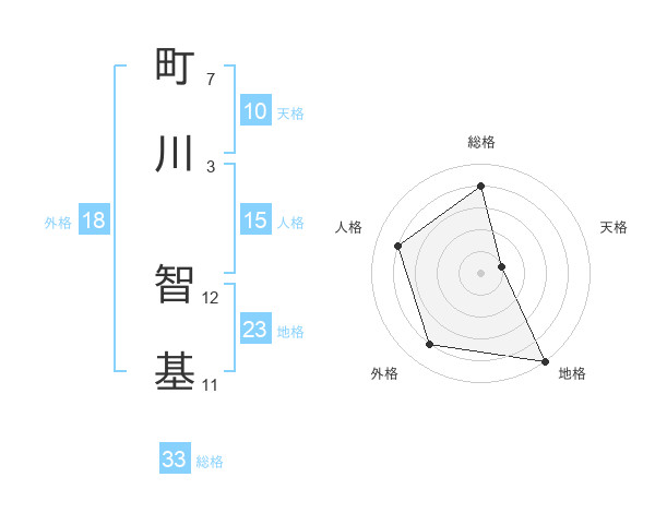 町川 智基さんの総格は33画の4点!
