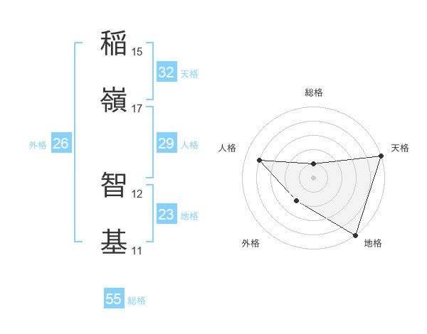 稲嶺 智基さんの地格は23画の5点!
