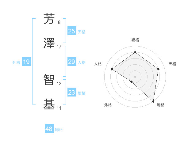 芳澤 智基さんの天格は25画の4点!