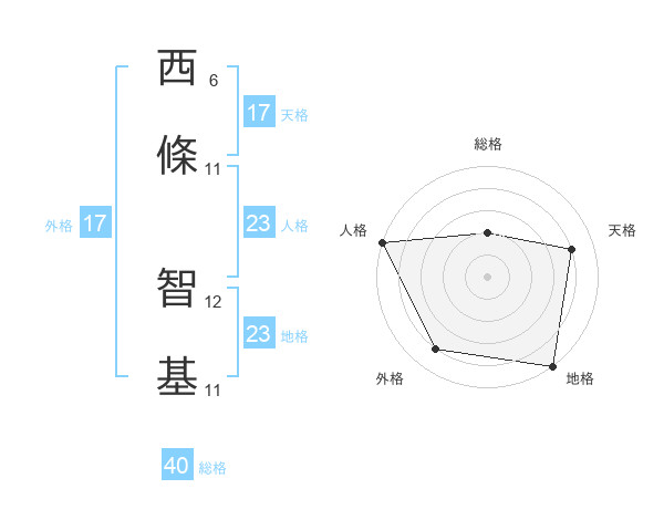 西條 智基さんの天格は17画の4点!