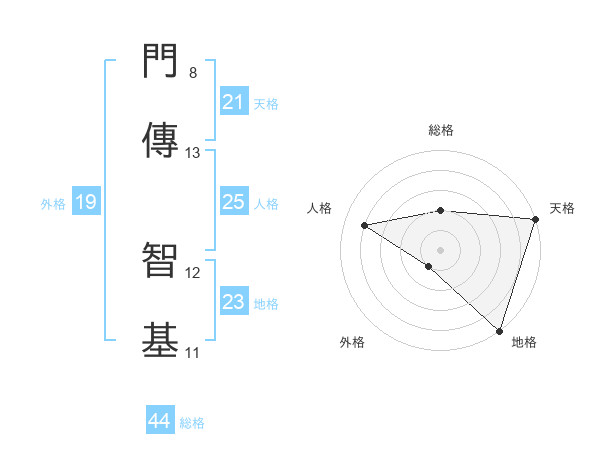 門傳 智基さんの天格は21画の5点!