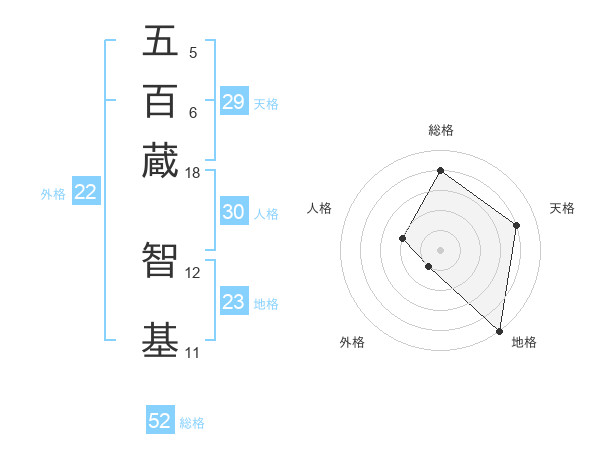 五百蔵 智基さんを姓名の画数から五運を鑑定