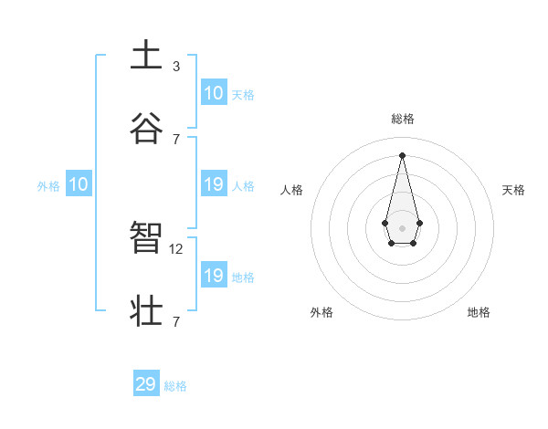 土谷 智壮さんの総格は29画の4点!