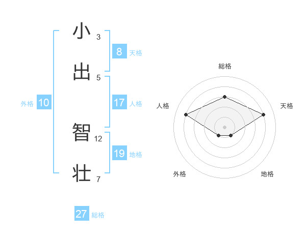 小出 智壮さんの総格は27画の3点!