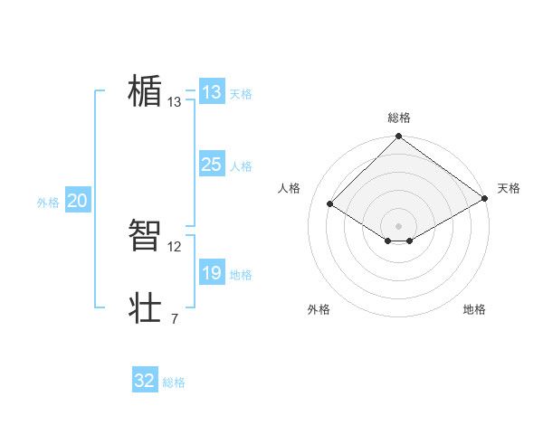 楯 智壮さんの総格は32画の5点!