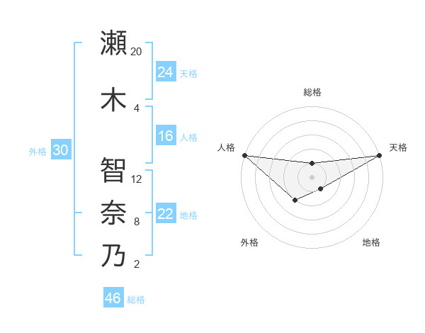 瀬木 智奈乃さんを姓名の画数から五運を鑑定