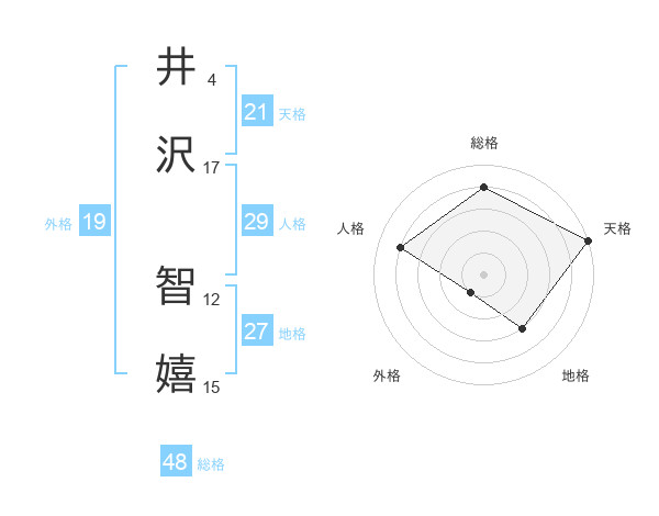 井沢 智嬉さんを姓名の画数から五運を鑑定